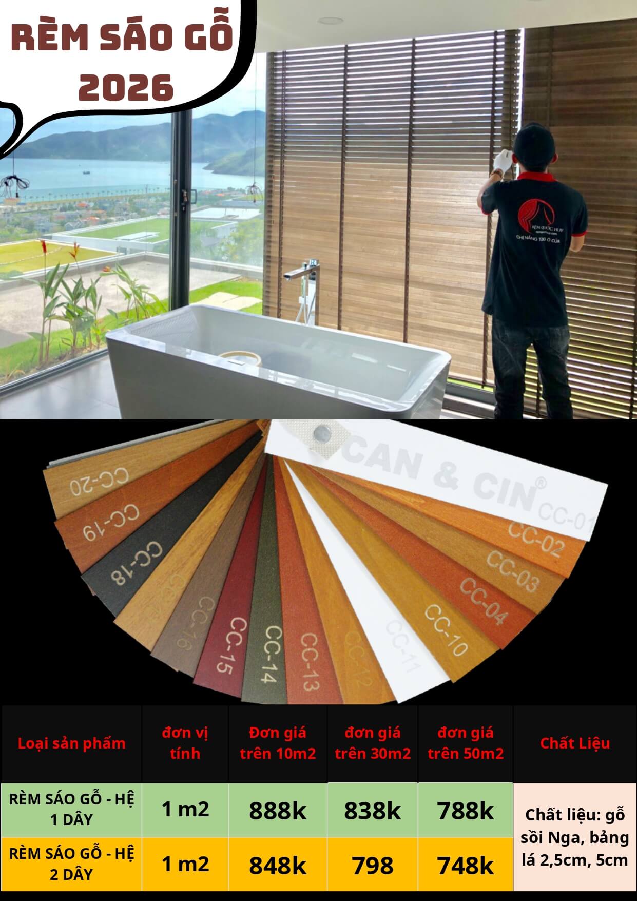 Đội ngũ Rèm Quốc Huy luôn sẵn sàng tư vấn chi tiết về các mẫu rèm sáo gỗ phù hợp với từng không gian, giúp bạn lựa chọn được giải pháp tối ưu cho công trình của mình.
