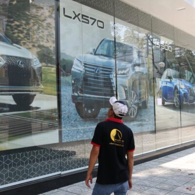 Rèm cuốn in tranh tự động cho hãng xe Quang Phương với công nghệ sơn phủ UV 3D hiện đại giúp bức tranh sắc nét và độ bền màu cao.