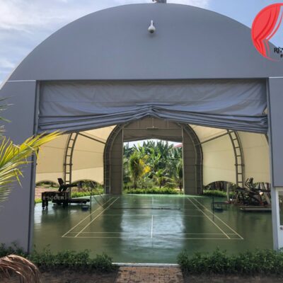 - Hệ rèm Roman lớn che nắng cho 4 sân.
